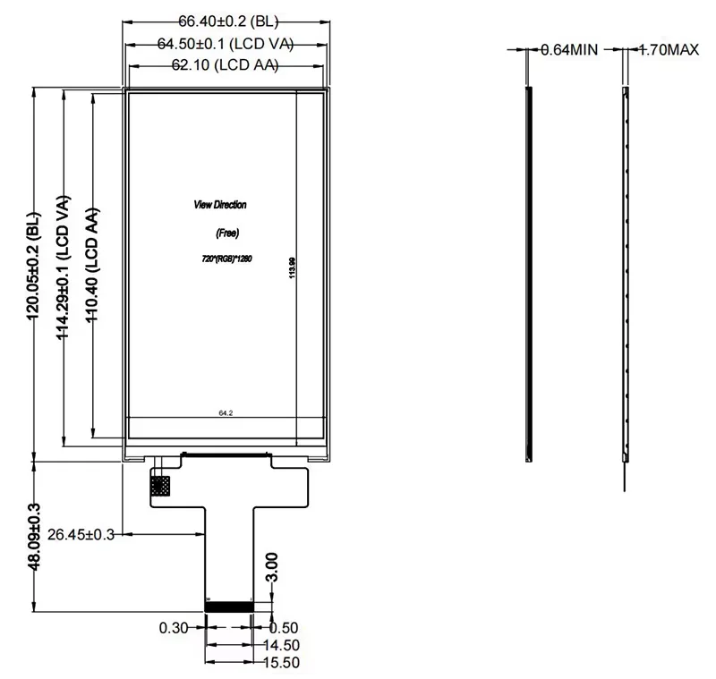 Повдигнете визуалното въздействие на вашето устройство с нашия модул за сензорен екран с висока яркост с висока яркост TFT: Той е идеален за интелигентни устройства, носими или автомобилни приложения, тъй като неговата разделителна способност 720x1920 отговаря на IPS пълни ъгли на гледане (178 °), с 300cd/m² яркост, дори видима дори при пряка слънчева светлина; 1,85 мм профил и компактен 66.40x120.05x1.85mm.